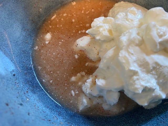 - Then mix the remaining wine with 1 teaspoon of the flour mix and sour cream and mix well.