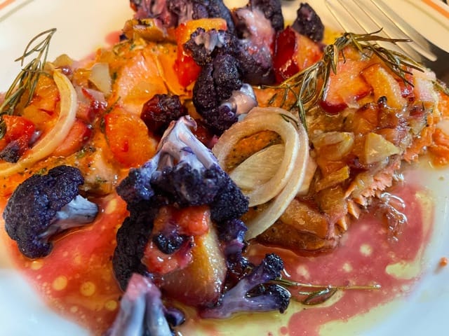 A great side to this dish to be served with this salmon recipe would be Purple Cauliflower!